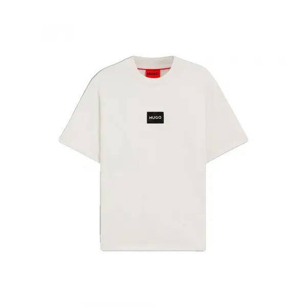 캐주얼한 HUGO 남성복 티셔츠로, 현대적인 감각을 더하는 독특한 거북이 등껍질 로고 패치가 특징이며, 평범함과는 차별화됩니다.