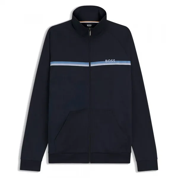 모던한 체스트 스트라이프와 로고가 프린트되어 있습니다.