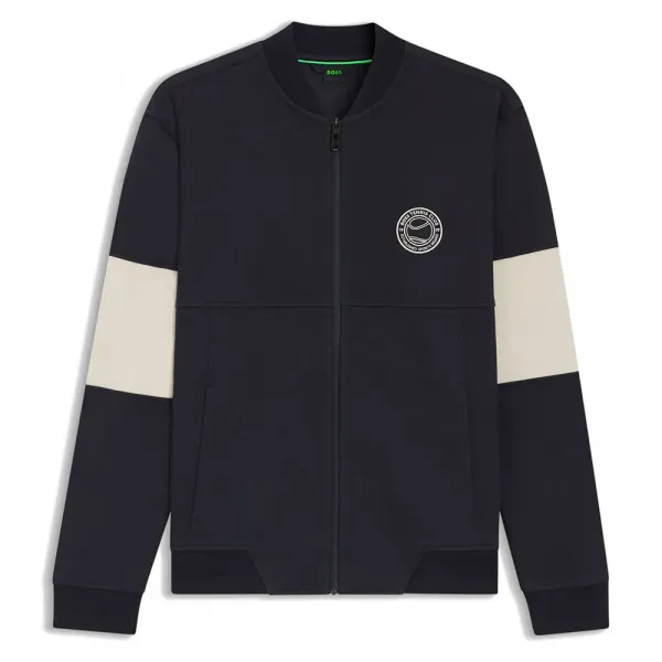 특징: - 레귤러 핏 - 플랫 니트 칼라 - 상단 잠금: 지퍼 클로저 - 상단 포켓: 웰트 포켓 - 긴소매 - 플랫 니트 커프스 - 일반 길이 사양: - 소재: 면 83%, 폴리에스터 14%, 엘라스테인 3% 관리: - 30°C 약하게 세탁 - 표백제 사용 금지 - 건조기 사용 금지 - 저온으로 다림질 - 드라이클리닝 금지