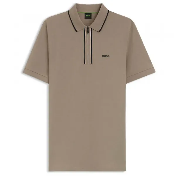 특징: - 슬림핏 - 플랫 니트 칼라 - 잠금 방식: 지퍼 클로저 - 반소매 - 플랫 니트 커프스 - 스탠더드 길이 사양: - 소재: 면 92%, 엘라스테인 8% 관리: - 30°C 순한 섬세 세탁 - 표백제 사용 금지 - 회전 건조 금지 - 저온 다림질 - 드라이클리닝 금지