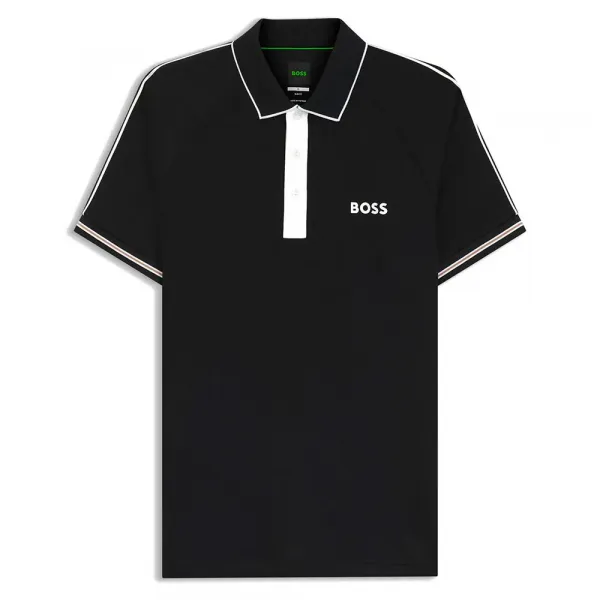 특징: - 슬림핏 - 네크라인: 플랫 니트 칼라 - 반팔 - 플랫 니트 커프스 - 옆트임 - 일반 기장 - 메쉬 칼라 사양: - 소재: 폴리에스터 100% (재활용 97%) 관리: - 찬물에 약하게 세탁 - 표백제 사용 금지 - 건조기 사용 금지 - 약한 온도로 다림질 - 드라이클리닝 금지