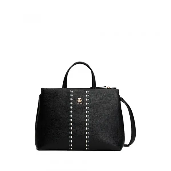 특징: - 페블 그레인 마감 - 자석 잠금 - 두 개의 탑 핸들 - 접이식 숄더 스트랩 - 하나의 메인 수납 공간 - 외부 지퍼 포켓 1개 - 전면 시그니처 테이프 디테일 - 전면 TH 모노그램 장식 - 타미 힐피거 브랜딩 사양: - 사이즈: 29x16 x 23cm - 용량 7L - 소재: 폴리우레탄 100%