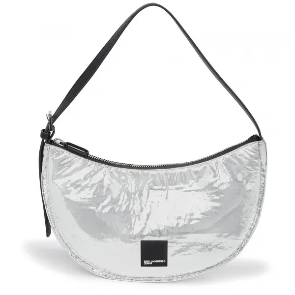 세련되고 시선을 사로잡는 이 숄더백은 글로시한 마감, 곡선형 호보 실루엣, 은은한 KARL LAGERFELD JEANS 로고 디테일로 대담하고 현대적인 감각을 선사합니다