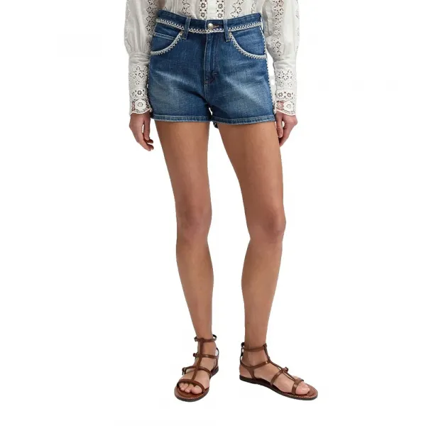 아이코닉한 라이더 팬츠를 더 과감한 컷으로 재해석한 이 쇼츠는 아름다운 블랭킷 스티치로 마감되었습니다.