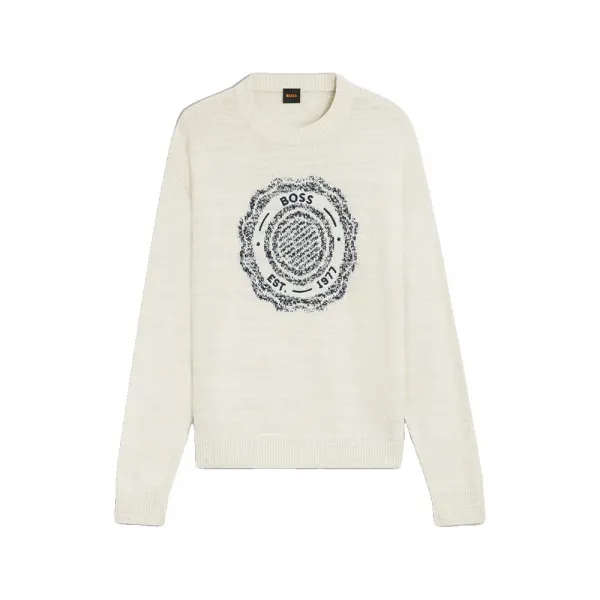 특징: - 릴랙스드 핏 - 크루넥 - 긴소매 - 골지 커프스 - 레귤러 길이 사양: - 소재: 울 48%, 면 39%, 폴리아미드 13% 관리: - 찬물에 약하게 세탁, 회전 속도 줄임.