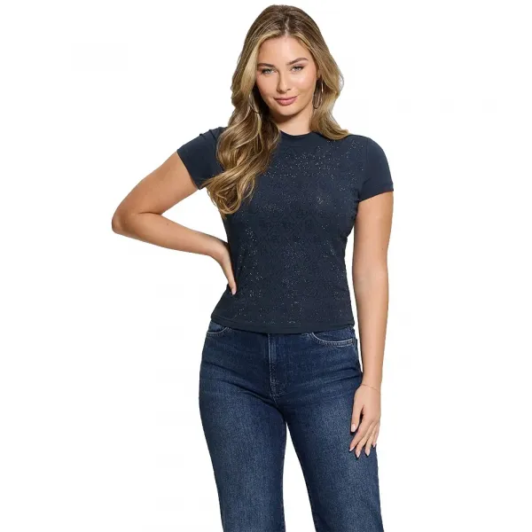 이 여성 티셔츠의 진정한 매력은 눈부신 중앙 장식인 아이코닉한 GUESS 로고에 있습니다.