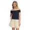 오프숄더 바르도 네크라인과 캡 소매는 캐주얼웨어에 세련된 감각을 더합니다.
