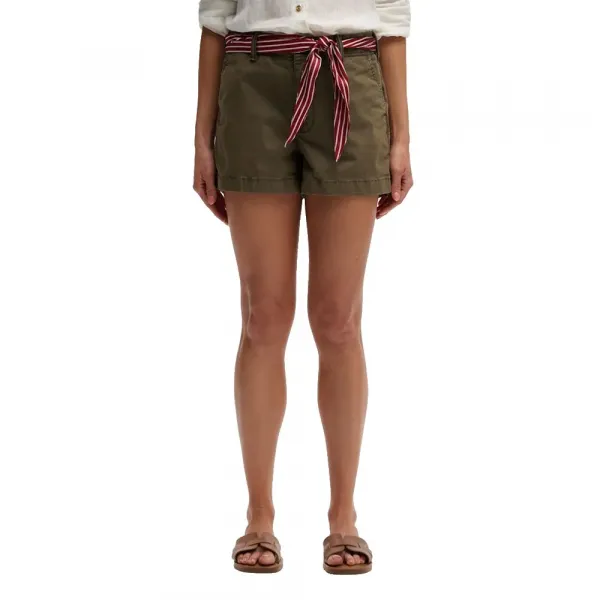 클래식 치노 쇼츠는 탈부착 가능한 패턴 패브릭 벨트와 함께 디자인되었습니다.