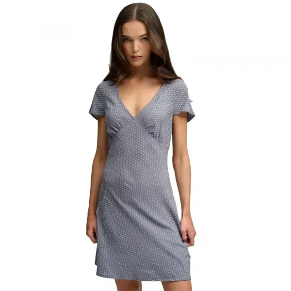 특징: - 몸에 더 가깝게 피트되어 재단된 듯한 룩을 연출하는 슬림핏 - 올오버 도트 프린트 원단 - 랩 스타일의 스윗하트 V넥 라인 - 모아진 가슴 디테일 - 짧은 플러터 소매 - 미니 기장 - 살짝 퍼지는 스커트 사양: - 소재: 100% 비스코스 관리: - 30°C 매우 순한 섬세 코스 세탁 - 표백 금지 - 건조기 사용 금지 - 저온에서 다림질 - 드라이클리닝 금지