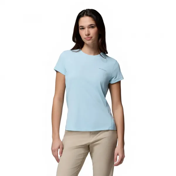 옴니-프리즈 제로™ 땀 활성화 냉각 기술이 적용된 이 컬럼비아 여성용 테크니컬 티셔츠로 더위 속에서도 시원함을 유지하세요.
