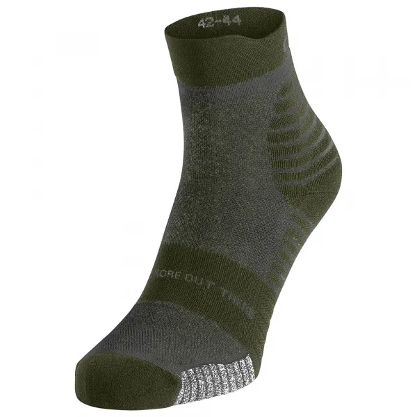 하이킹과 트레일 러닝을 위해 제작된 쿼터 길이의 퍼포먼스 메리노 트레일 양말은 천연 메리노 울과 합성 섬유를 혼합하여 지형이 험해지고 심박수가 올라갈 때 발 온도를 조절하고 습기를 배출하는 데 도움을 줍니다.