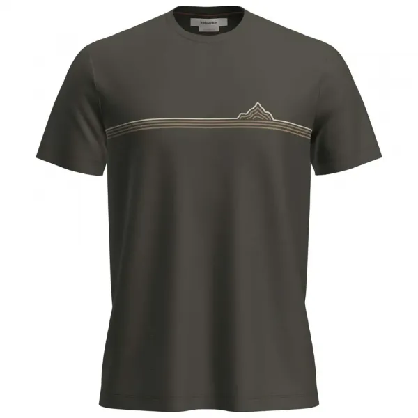 티셔츠의 독창적인 그래픽 아트워크는 지평선에서 정상까지 뻗어 나가는 산 능선의 손으로 그린 프린트를 특징으로 합니다.
