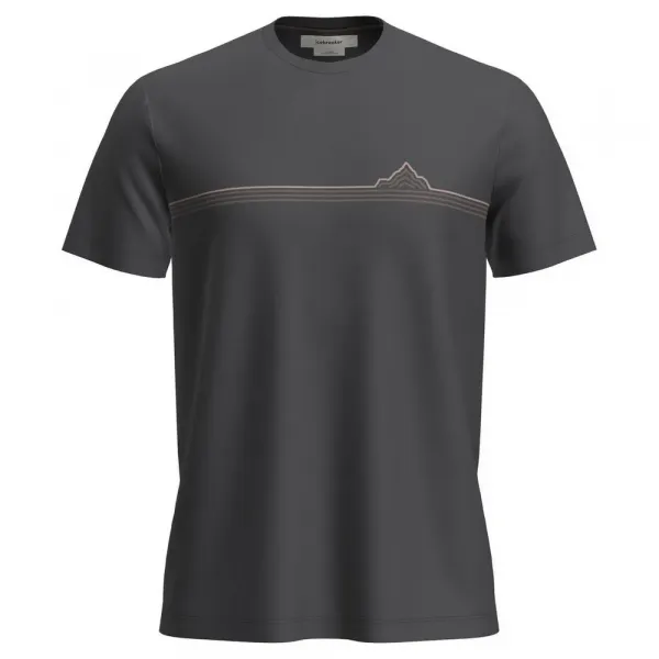 티셔츠의 오리지널 그래픽 아트워크는 수평선에서 정상까지 뻗어 있는 산 능선 라인의 손으로 그린 프린트가 특징입니다.