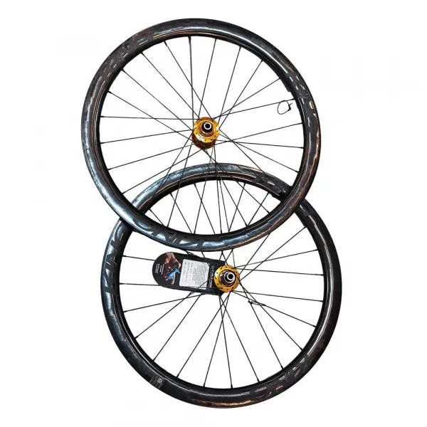 휠 세트에는 앞바퀴와 뒷바퀴가 모두 포함되어 있으며, 부드러움과 신뢰성으로 유명한 CHRIS KING R45D 허브가 장착되어 있습니다.