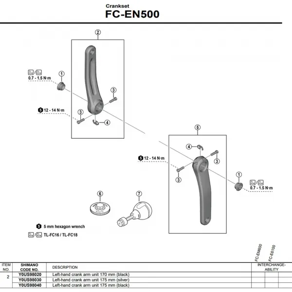 주요 특징: * 정품 SHIMANO 교체 부품 * 왼쪽 크랭크 암만 포함 * SHIMANO STEPS E-바이크 시스템 전용 설계 * 비비용 표준 사각 테이퍼 방식 인터페이스 특징 * 센서 미포함, 센서가 다른 곳에 위치한 시스템용 설계 * 내후성 및 마모 저항을 위한 내구성 있는 마감 --- 기술 사양: * 브랜드: SHIMANO * 모델: FC-EN500 * 부품 번호: Y0US98040 * 시리즈: SHIMANO STEPS E5000 * 측면: 왼쪽 * 색상: 블랙 * 비비 인터페이스: 사각 테이퍼 방식 * 속성: 크랭크, E-바이크, 센서 없음