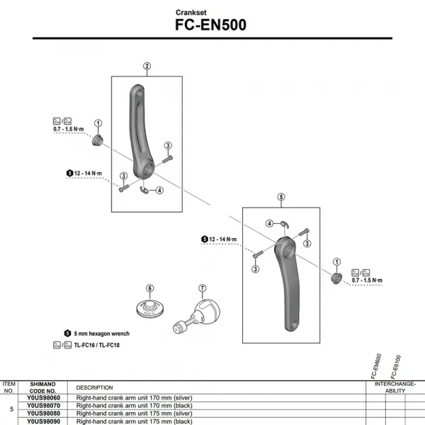 --- 기술 사양: * 제품: 오른쪽 크랭크 암 * 브랜드: SHIMANO * 모델: FC-EN500 * 부품 번호: Y0US98060 * 용도: E-바이크 (시티, 트레킹) * 속성: 크랭크, E-바이크, 센서 없음 * 크랭크 암 길이: 175mm * 바텀 브래킷 인터페이스: 사각 테이퍼 * 색상: 블랙 * 권장 구동계: 9/10/11단 체인과 함께 SHIMANO STEPS E6100 시스템에 최적화되었습니다