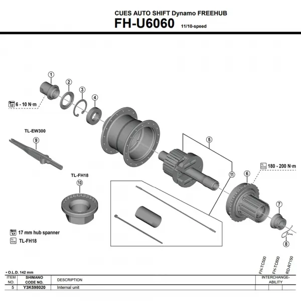 * SHIMANO CUES FH-U6060 리어 프리허브 전용으로 설계되었습니다.
