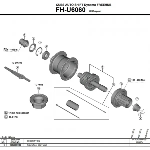 SHIMANO CUES FH-U6060 허브 전용으로 설계된 공식 교체 부품인 정품 SHIMANO Y3K598030 프리허브 바디로 라이딩에 새로운 생명을 불어넣으십시오.
