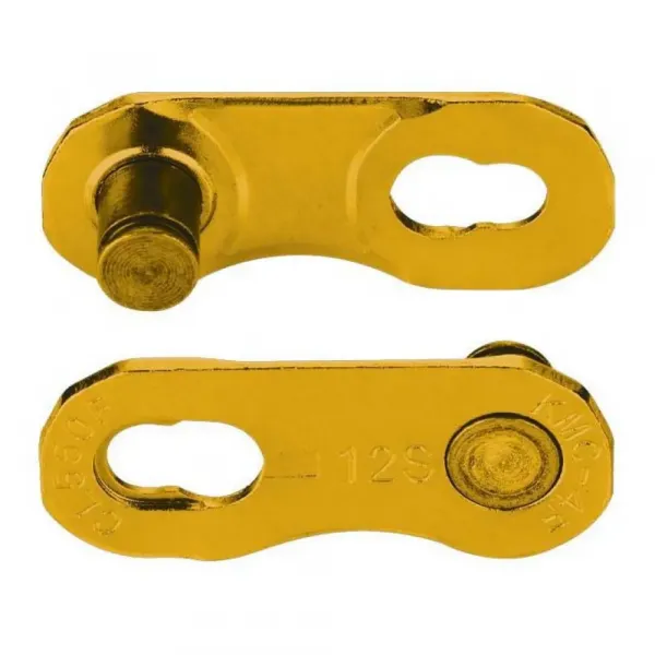 이 2피스 KMC 미싱 링크 세트(TiN 골드)는 플랫탑 체인을 도구 없이 장착 및 제거할 수 있습니다.