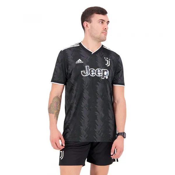 이 adidas Juventus 원정 져지에는 홈 경기의 두 가지 영원한 상징이 충돌합니다.