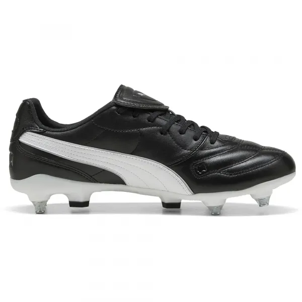 세부 정보: 너비: 일반 발가락 모양: 둥근 잠금 방식: 끈 굽 높이: 플랫 경량 오솔라이트® 깔창 시그니처 덮개 디자인의 혀 발 모양에 맞춰 제작되어 경기 내내 편안함을 제공하는 개선된 보편적인 핏 혼합/부드러운 지면에 설계된 원뿔형 스터드가 있는 경량 밑창.