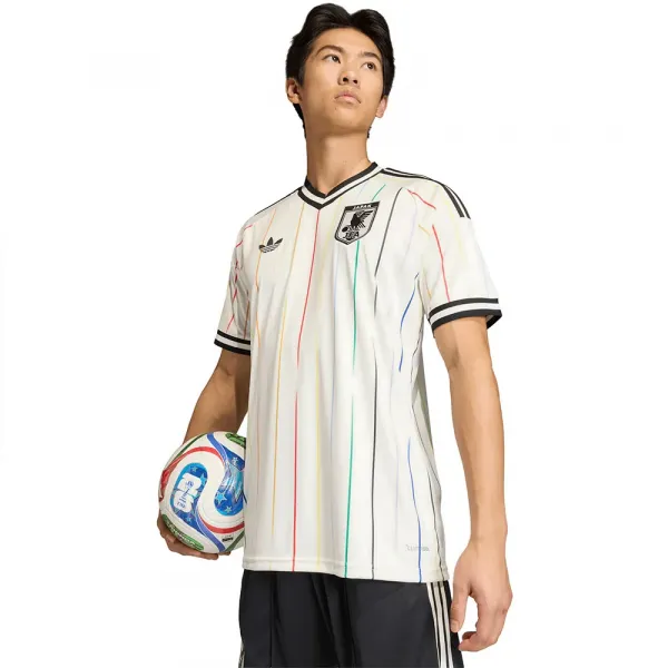 일본 축구 협회 엠블럼이 특징이며, 스포티한 느낌을 더하는 상징적인 아디다스 브랜딩이 돋보입니다.