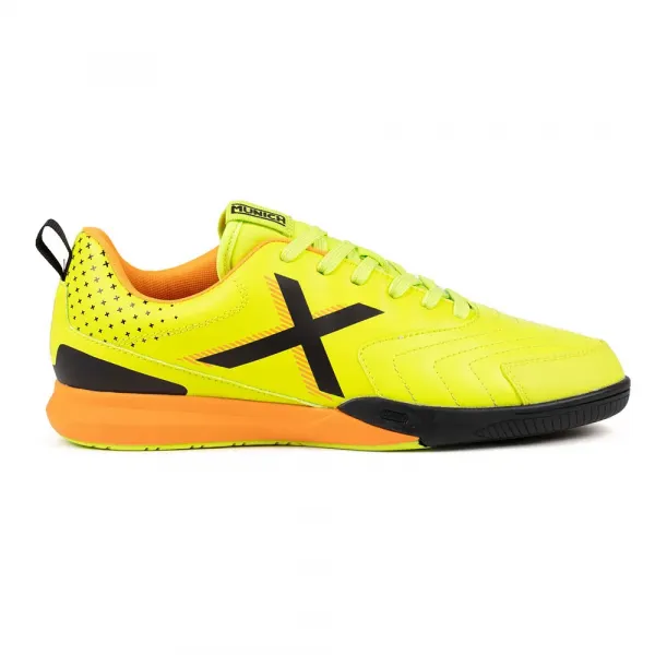 블랙과 오렌지 디테일이 돋보이는 가벼운 구조는 엘리트 풋살을 정의하는 민첩성을 모방했으며, 실내 표면에서 정밀한 접지력을 제공하도록 설계된 내구성이 뛰어난 소재와 고무 밑창을 통합했습니다.