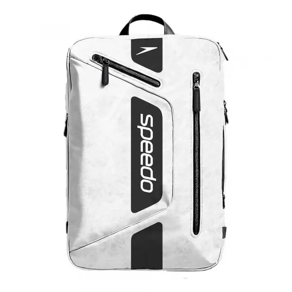 두 개의 전면 지퍼 포켓, 물병을 쉽게 꺼낼 수 있는 포켓, 그리고 수영 용품을 모두 정리하고 안전하게 보관할 수 있는 25리터 용량을 갖추고 있습니다.