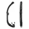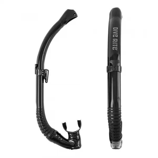 이 스노클은 단순하고 편안한 디자인이며, 이동 가능한 마스크 고정기와 쉽게 물을 비울 수 있는 하단의 퍼지 밸브를 포함하고 있습니다