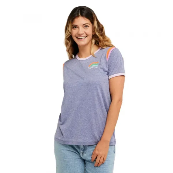 주요 특징 및 기술 사양: * 제품 유형: 티셔츠 * 성별: 여성 * 소매 길이: 반팔 * 스타일: 클래식 링거 티셔츠 디자인으로, 크루 넥라인과 소매 밑단에 특징적인 대비되는 색상의 바인딩이 있어 빈티지하고 스포티한 미학을 선사합니다.