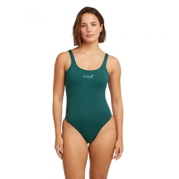 몸매를 살려주는 중간 정도의 하의 커버리지와 필요에 따라 조절 가능한 탈착식 패드가 포함된 컵이 있어 안정감을 더하며, 가슴 중앙에는 깔끔한 스크립트 프린트가 새겨져 있습니다