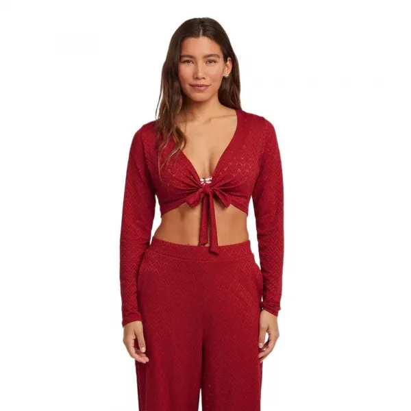 레트로 스타일에서 영감을 받은 오리지널스 너티드 롱슬리브 티셔츠는 타이 허리와 V넥 실루엣이 특징인 슬림핏입니다
