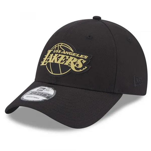 기술 사양: 제품: 뉴에라 로스앤젤레스 레이커스 메탈릭 배지 9FORTY 캡 블랙 소재: 전면에 메탈릭 패치가 있는 100% 면 9FORTY 핏: 성인용, 조절 가능 특징: 내구성 강화를 위한 합성 소재 요소