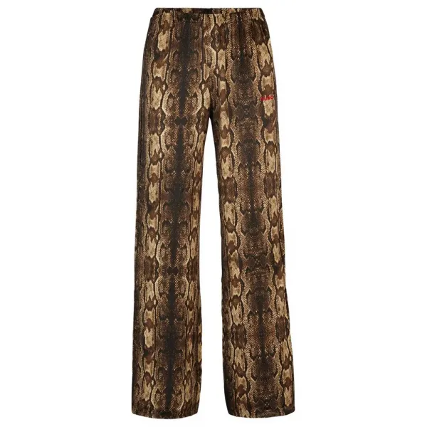 기술 사양: * 제품: 엑조티카 파자마 팬츠 * 브랜드: HUGO * 대상: 여성 * 스타일: 바지 * 길이: 롱 * 디자인: 올오버 "엑조티카" 프린트 * 소재 유형: 합성 하이 사이드 슬릿.