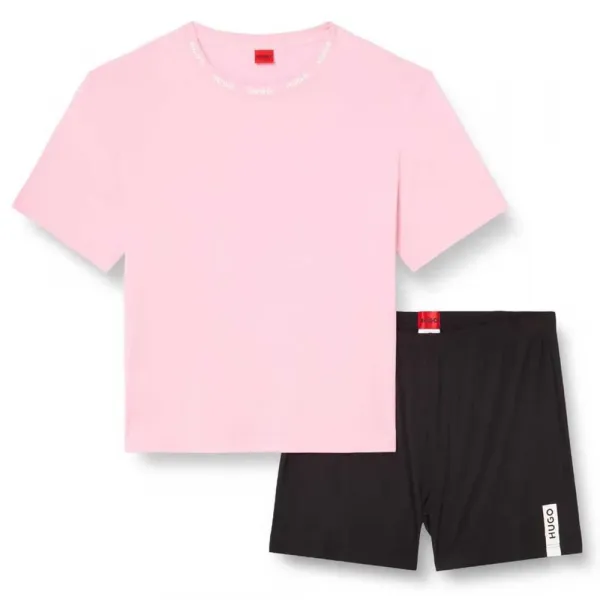 기술 사양: 제품: HUGO Unite 파자마 세트 성별: 여성 카테고리: 의류, 파자마, 라운지웨어 유형: 투피스 세트 상의 스타일: 긴팔 상의 하의 스타일: 허리 밴딩 반바지 핏: 편안한 릴렉스 핏 주요 특징: 부드러운 터치감의 스트레치 원단, 시그니처 HUGO 로고 디테일, 상의와 하의 길이 대비.