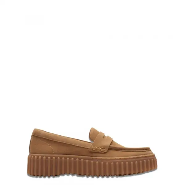 밝은 갈색 누벅 어퍼와 탈착식 인솔이 있습니다.