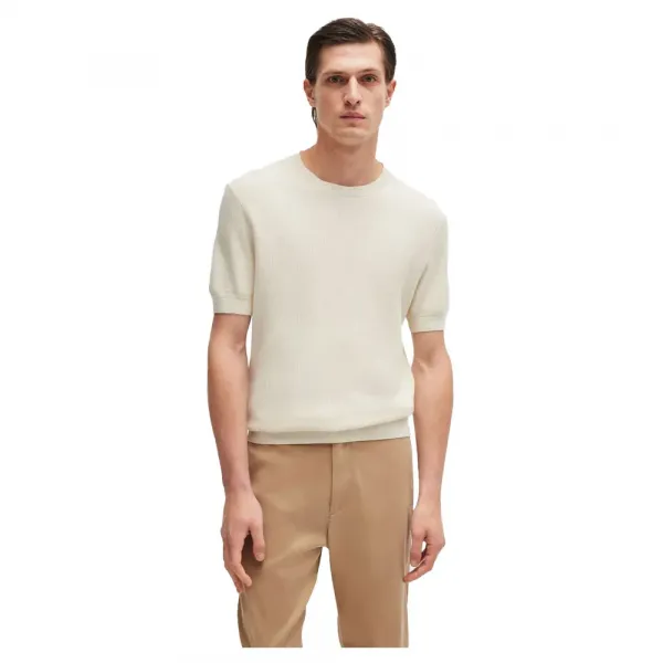 이 반소매 옷은 면과 혼방되어 있으며 로고 플래그로 마감되어 있습니다.