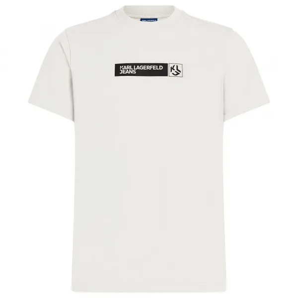 이 클래식한 크루넥 티셔츠는 오가닉 코튼으로 제작되었으며, 가슴 부분에 KARL LAGERFELD JEANS 로고 디자인이 특징입니다.