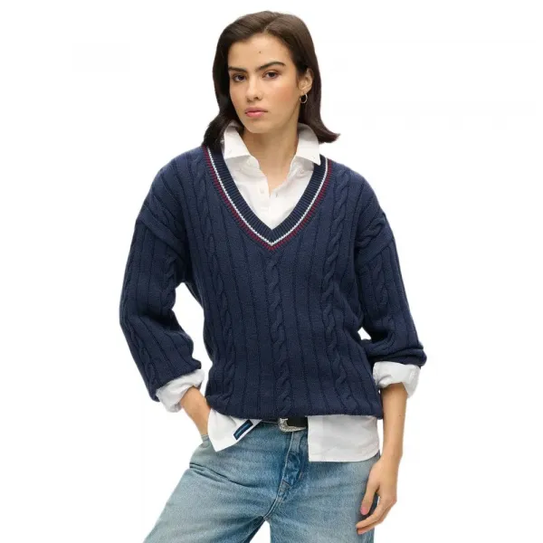 V넥 디자인과 케이블 니트 디자인으로 제작되어 이번 시즌 어떤 룩에도 자연스럽게 세련된 분위기를 더할 수 있는 제품입니다.