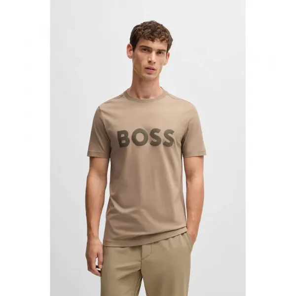 디자인의 핵심은 상징적인 BOSS 로고이며, 가슴에 크고 광택이 나는 톤온톤 미러 스탬프로 재해석되었습니다.