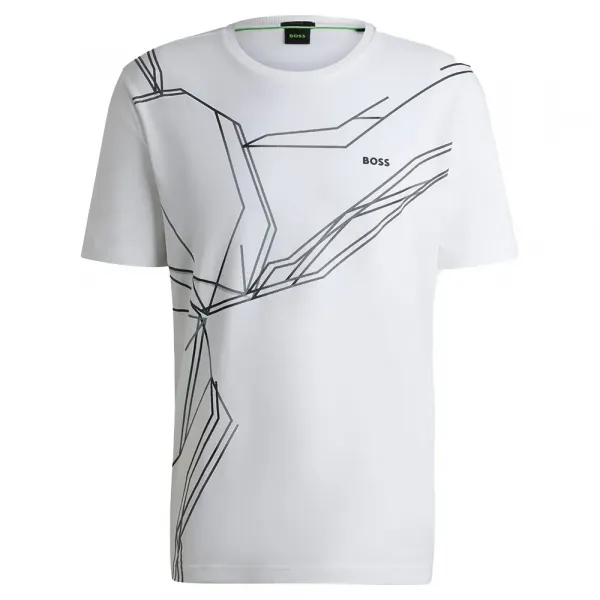 특징: - 레귤러 핏 - 크루넥 - 반소매 - 스탠다드 길이 사양: - 소재: 면 95%, 엘라스테인 5% 관리: - 30°C 중성세제로 손세탁 - 표백 금지 - 회전식 건조 금지 - 저온 다림질 - 드라이 크리닝 금지