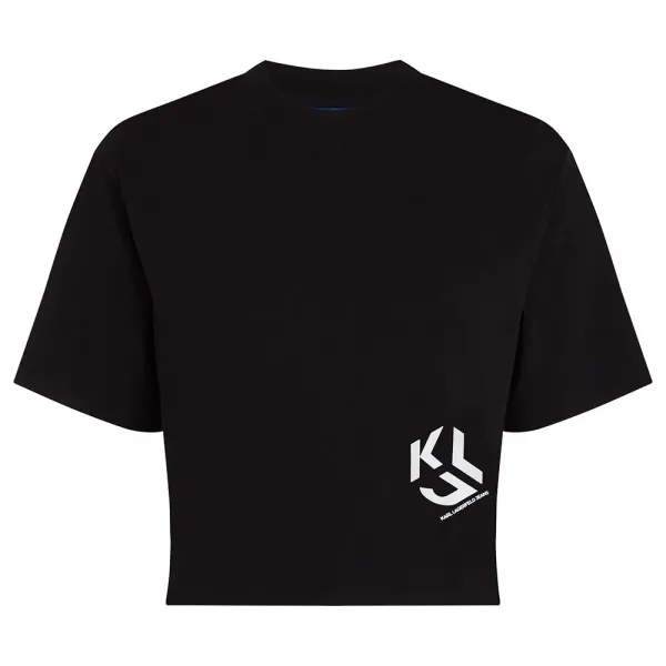 KARL LAGERFELD 레귤러 크롭 모노그램 반팔 티셔츠로 편안함, 스타일, 고급스러움의 완벽한 조화를 경험해보세요.