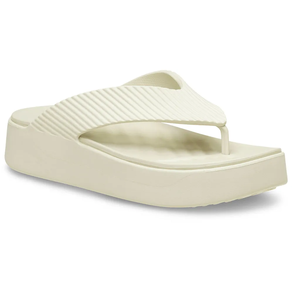 다양한 높이와 스타일리시한 실루엣으로 모든 상황과 모든 여행에 적합한 샌들을 만나보세요! 이 버전은 플랫폼 플립 실루엣과 리조트에서 영감을 받은 텍스처가 특징입니다.
