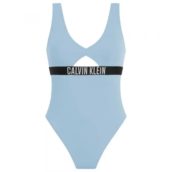 중앙 개방형 디자인과 캘빈클라인 로고 웨스트밴드가 있는 여성용 원피스 수영복.