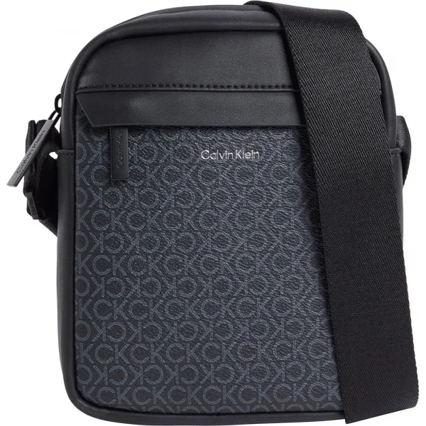 남성용 ck must 모노그램 블랙 리포터 지퍼 잠금 및 조절 가능한 스트랩 포함.