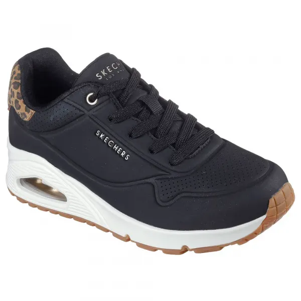 특징: - 스케쳐스 에어 쿨드 메모리 폼® 쿠션 컴포트 인솔 - 스케치-에어® 비저블 에어 쿠션 미드솔 디자인 세부 정보: - 레오파드 프린트 힐 머스타쉬가 있는 레이스업 합성 갑피 - 여분의 신발 끈 세트 - 유연한 고무 트랙션 아웃솔 - 스케쳐스® 로고 디테일 기술: 에어 쿨드 메모리 폼: - 스케쳐스 에어 쿨드 메모리 폼®은 압력 완화, 즉각적인 편안함 및 통기성을 제공합니다.