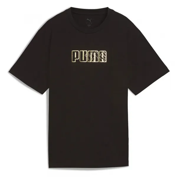 맥시멀 메탈릭 티셔츠는 부드러운 저지 니트에 눈길을 사로잡는 포일 그래픽으로 빛을 더합니다.
