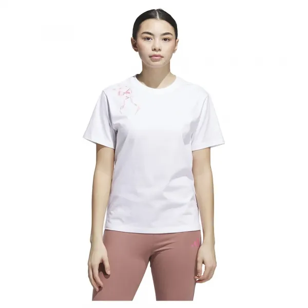 이 아디다스 티셔츠는 앞면에 예쁘고 장난기 넘치는 리본 그래픽으로 발레에서 영감을 받은 스타일을 선사합니다.