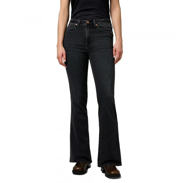 특징: 와이드 레그, 미드 라이즈 웨이스트, 플레어 부츠컷 디자인.