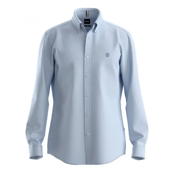 특징:- 커프스: 라운드 커프스- 핏: 슬림핏- 칼라: 버튼다운 칼라- 소매 길이: 긴소매- 로고: 로고 자수사양:- 소재: 면 100%
